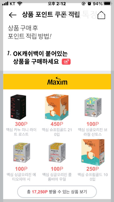 <맥심 커피마시고 OK캐시백 포인트 적립하기>